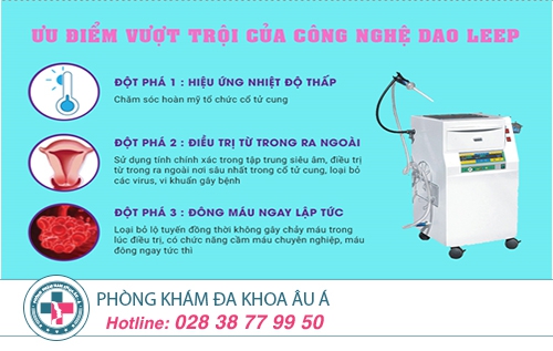 Với tình trạng viêm cổ tử cung tùy từng nguyên nhân để bác sĩ đưa ra phác đồ điều trị phù hợp. Tại Phòng Khám Đa Khoa Âu Á, các bác sĩ áp dụng kỹ thuật Dao Leep để điều trị bệnh hiệu quả.