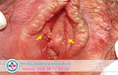 Bệnh sùi mào gà: các nốt sùi mào gà màu hồng mọc khắp vùng âm hộ, âm vật, môi bé... không được chữa trị kịp thời gây ngứa ngáy, lở loét, đau rát vùng kín, đau âm vật, chảy dịch hôi tanh...