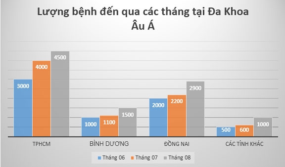 Biểu đồ phân chia lượng bệnh nhân đến trong các tháng năm 2019
